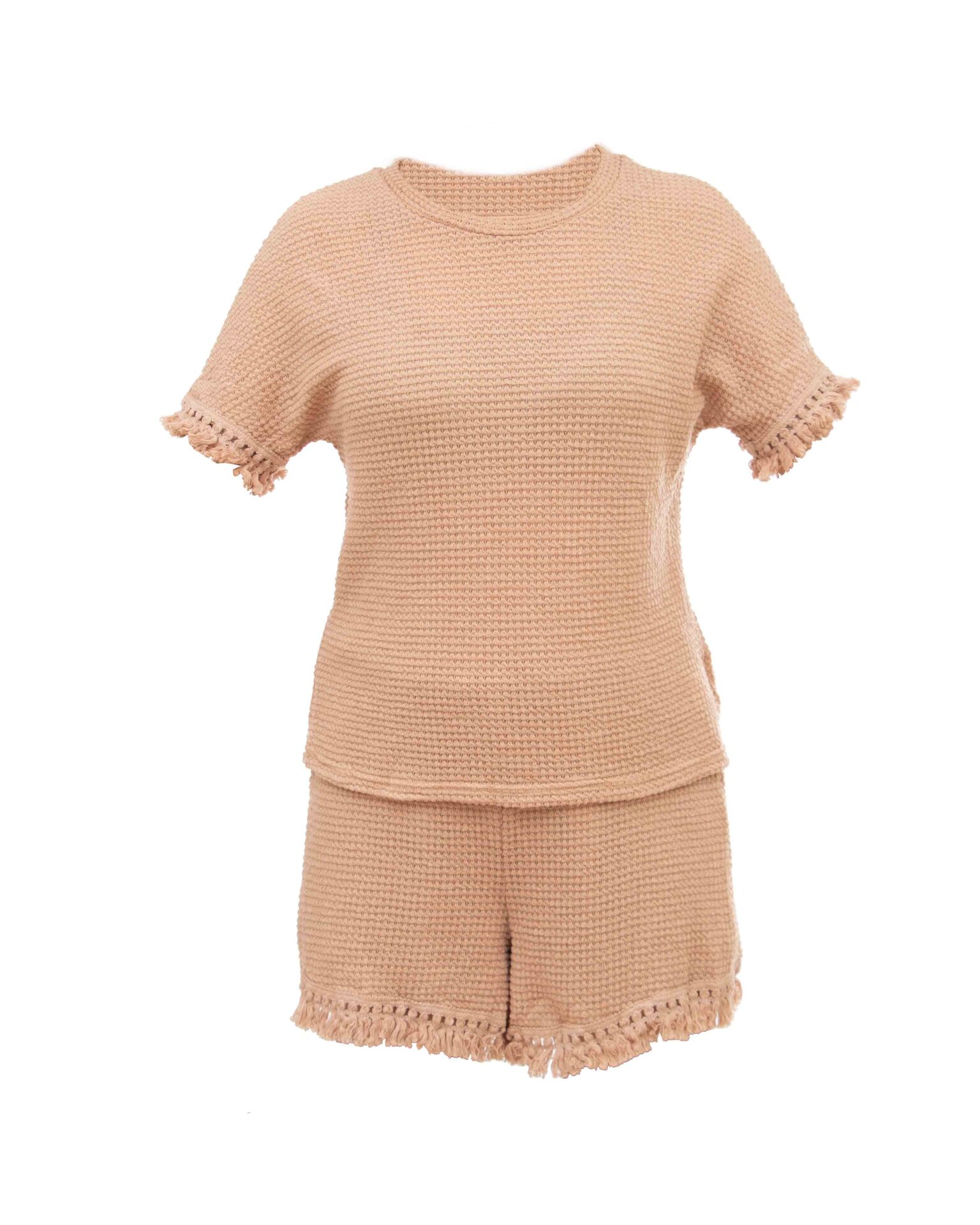 ست تیشرت شورتک پایین ریش زنانه 4040